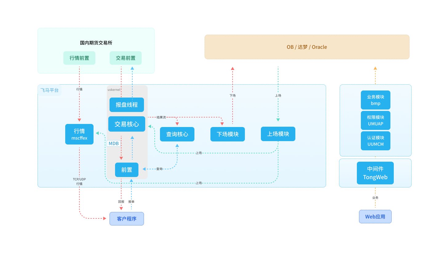 飛馬期貨交易平臺(tái)是為期貨公司量化客戶、機(jī)構(gòu)客戶及做市商客戶提供的專業(yè)交易平臺(tái),集業(yè)務(wù)交易、前置風(fēng)控、行情推送、數(shù)據(jù)管理等功能于一體。業(yè)務(wù)上,信創(chuàng)化交易后臺(tái)可支持國(guó)內(nèi)六家期貨交易所期貨、期權(quán)全品種交易;管理上,信創(chuàng)化web端業(yè)務(wù)管理平臺(tái)可滿足客戶基本信息管理、交易參數(shù)管理、交易數(shù)據(jù)查詢、風(fēng)控參數(shù)管理、結(jié)算數(shù)據(jù)同步等多種管理需求;接入上,可同時(shí)提供信創(chuàng)API和常規(guī)API,滿足交易終端雙軌運(yùn)行需求。